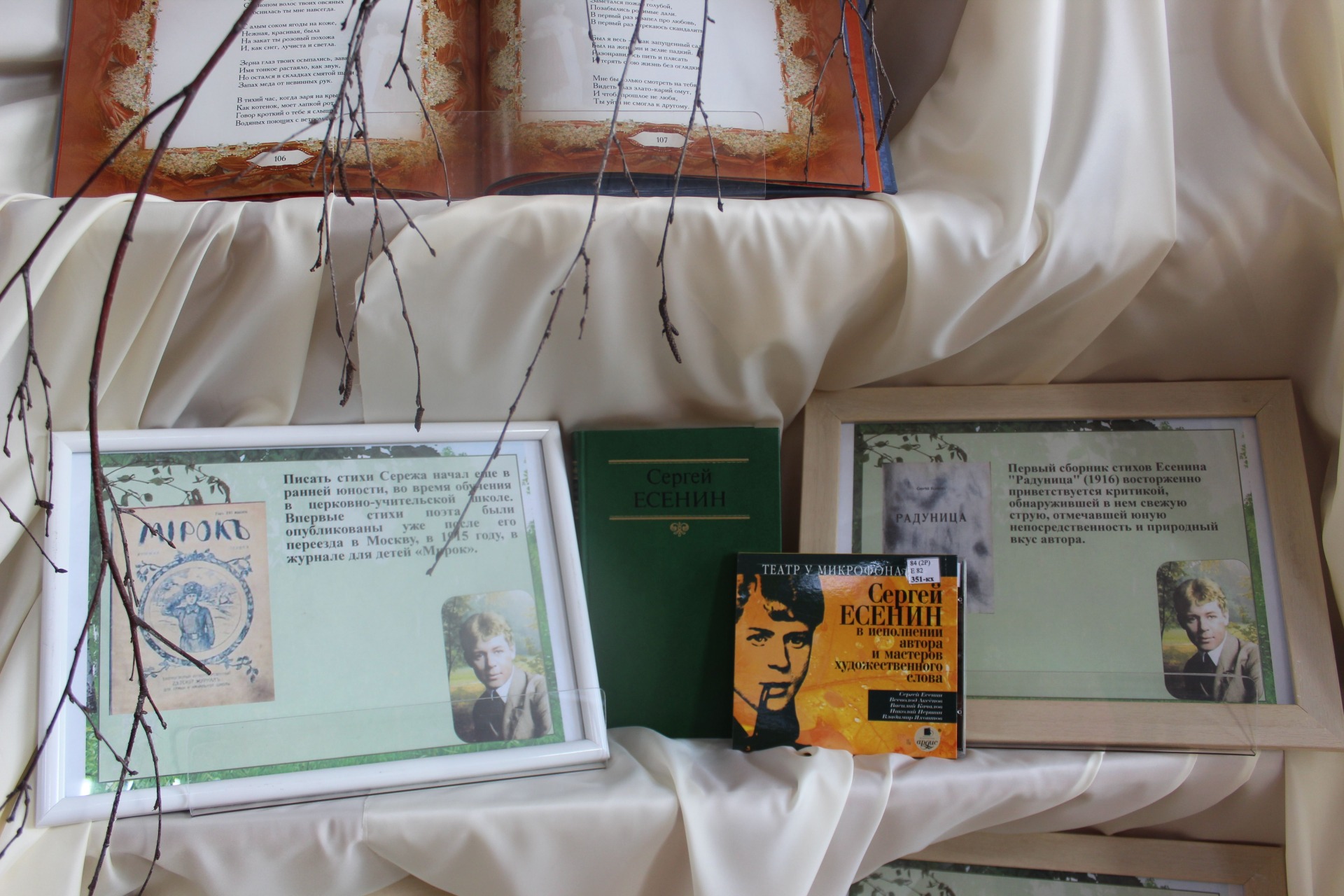 К этой знаменательной юбилейной дате в Красноуфимской Центральной районной библиотеке оформлена выставка «Певец страны березового ситца», на которой представлены основные моменты биографии и творческого пути поэта, а также некоторые произведения Сергея Есенина.